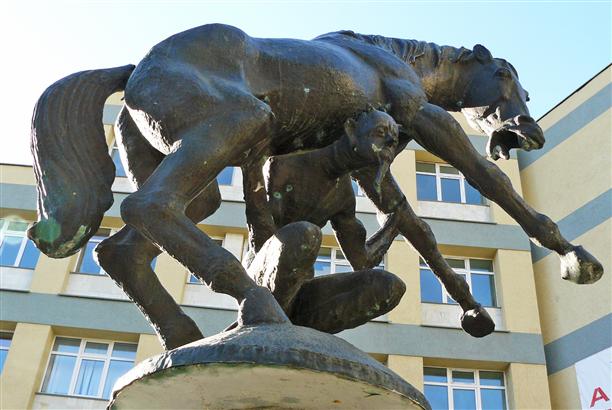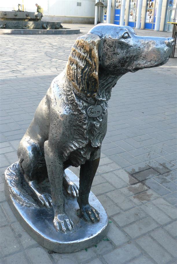 Очень трогательный памятник Белому Биму Желтому Черному уху стоит перед кукольным театром "Шут" (пр. Революции, 50).