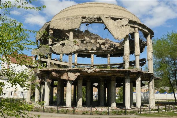 И все же самый невероятный памятник в Воронеже - это Ротонда областной больницы, сохранившаяся после кровопролитных боев 1942 года. 203 дня шли бои на территории этой больницы. Так она выглядела в те далекие дни, точно так же она выглядит и сейчас.... Это даже не памятник героям-освободителям, доблести и мужеству защитников Воронежа, это памятник Войне. Страшный памятник-напоминание. Ротонда стоит на пересечении ул. Транспортной и ул. 45-й стрелковой дивизии.