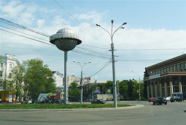 Сооружение на Университетской площади воронежцы называют памятником чупа-чупс. Этот глобус на ножке появился напротив Воронежского госуниверситета еще в 1970-х :) На ленте, опоясывающей глобус, значится "Пролетарии всех стран, соединяйтесь!", что в общем-то никак не противоречит и идее чупа-чупс. Власти грозятся снести памятник, а жаль...