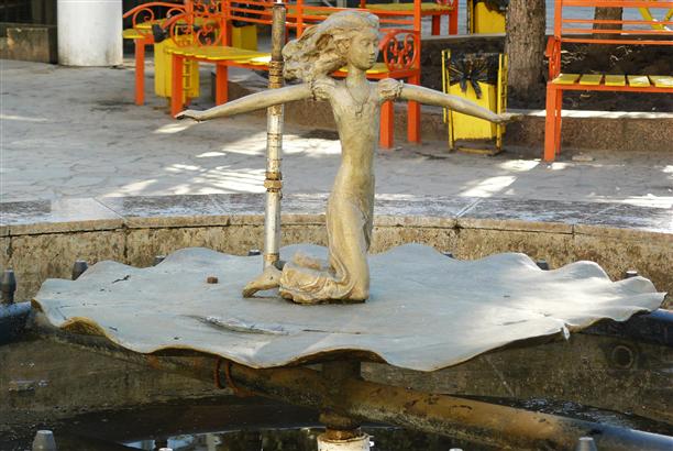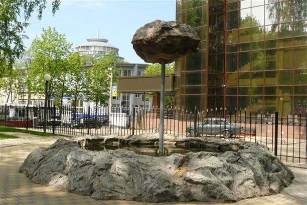 Продолжая тему... У Дома офицеров (пр. Революции, 32) существует фонтан "Парящий камень". Нам не повезло, он в тот день не работал и выглядел как какашка на палочке.