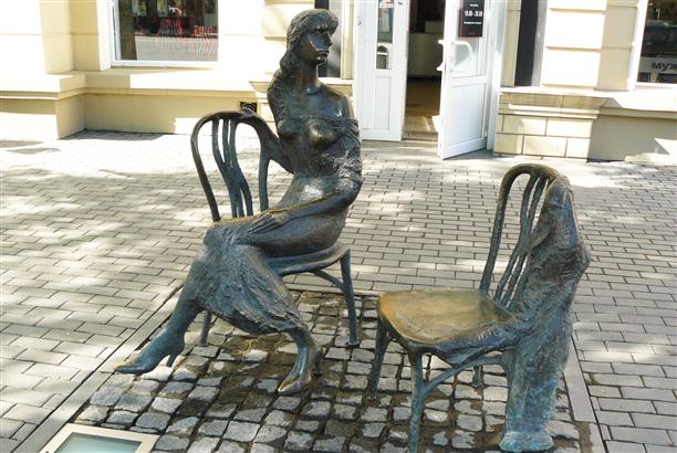 На этом тема стульев в Воронеже - не заканчивается. На улице Плехановской, 41 - еще одна интересная скульптура "Незнакомка. Приглашение к разговору". Одинокая женщина, готовая отдаться здесь и сейчас, сидит и ждет хозяина второго стула. Кто он? Когда придет? Надолго ли?... Круговорот случайных знакомых. Череда похожих сценариев. Приходят и уходят, а она все одна :( Может, просто стул слишком холодный?