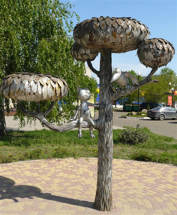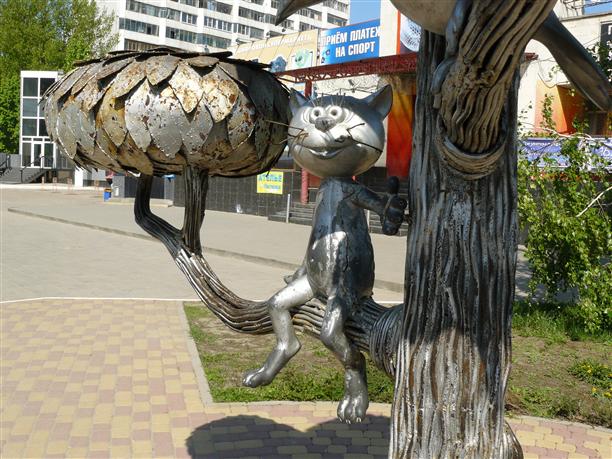 Какой же Воронеж без знаменитого мультяшного котенка с улицы Лизюкова? Сидит. Удивительно, что не на стуле :)) По адресу: ул. Генерала Лизюкова, 4. Придумала этот добрый памятник одиннадцатиклассница Ирина Поварова, а воплотили взрослые скульпторы Дикуновы-Пак. И вот сидит на ветвях чудо-дерева котенок Василий, рядом с ним сидит хитрая ворона - маг  в пятом поколении, сидят они и ждут, когда котенок станет бегемотом! :)) Вообще, наверное, стоит пересмотреть мультфильм. Очень плохо помню сюжет :)