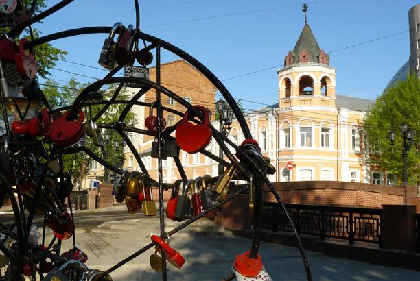 "Мост влюбленных" у пересечения улиц Карла Маркса и Чернышевского. Спроектирован в 1826 году и обновлен в 1986 году к 400-летию города. Культовое место, обязательная часть свадебных маршрутов - у моста "растет" дерево с традиционными замками.