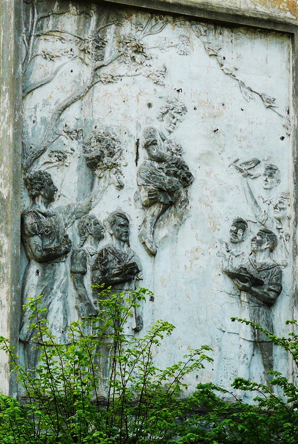 Заслуживает внимания и старый дом на ул. Депутатской, 11. Точнее, барельеф на нем. На самом деле маленькая девочка не висит на дереве, как это кажется, - ее держит на руках невидимый товарищ Сталин (кстати, с одной видимой рукой!). Просто в свое время его фигуру безжалостно срубили с фасада...