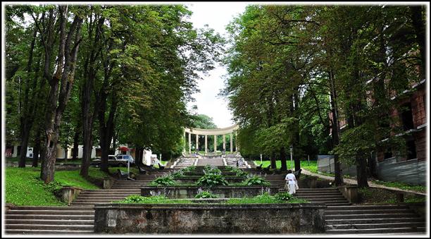 Кисловодск. В 1934—1935 гг. была сооружена Каскадная лестница. Каскадная лестница выполнена из местного строительного материала — доломитизированного известняка (в 1970 гг. истершиеся ступени и покрытия площадок были заменены бетонными). Авторы проекта Каскадной лестницы (архитекторы Л. С. Залесская и К. А. Шевченко) удачно вписали в рельеф все её части и детали. У подножия лестницы над полукруглыми бассейнами склонились ветви плакучей рябины. От второй площадки лестница расходится по обе стороны круглых водоемов — в центре каждого из них искрится фонтан. Верхнюю часть этого сооружения с боков украшают декоративные бассейны с капельными водопадами. Две полукруглые лестницы охватывают круглый бассейн самого верхнего фонтана и выводят на смотровую площадку.
