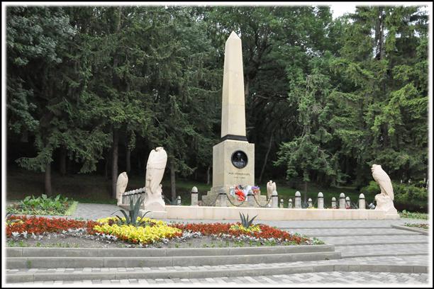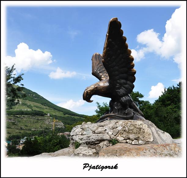 Пятигорский орел. Скульптурная композиция, изображающая орла в схватке со змеей — официальный символ Кавказских Минеральных Вод. Эта композиция была изготовлена скульптором Л. К. Шодким к столетию курорта, открыта 1 мая 1901 года. По мысли автора орел олицетворяет целебную силу минеральных источников, побеждающих болезни, которые символизирует змея в когтях у могучей птицы. Скульптура не раз меняла облик. Первоначально скульптурная композиция была изготовлена из цемента, но за прошедшие десятилетия цементная фигура не раз приходила в негодность, и её приходилось реставрировать. В 1973 году композиция была заново отлита из бронзы на Ленинградском заводе монументальной скульптуры, и установлена на прежнем месте. Открыта 15 октября 1973 года. Аналогичные скульптуры установлены во всех городах Кавказских Минеральных вод: Пятигорске, Кисловодске, Ессентуках и Железноводске — но пятигорский орел пожалуй самый красивый, и самый знаменитый среди них.