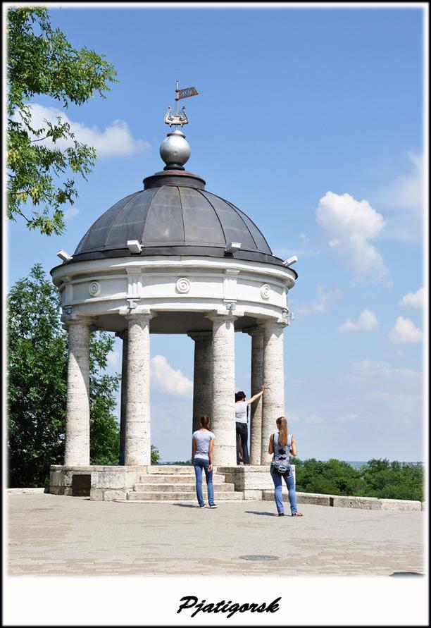 Беседка "Эолова Арфа". Построена в 1831 году по проекту Джузеппе Бернардацци на самой высокой точке Михайловского отрога горы Машук. Прообразом был павильон «Храм Эола» английского архитектора Уильяма Чемберса, построенный в парке Кью под Лондоном. В беседке установили оригинальный музыкальный инструмент — эолову арфу, широко распространённую в Европе. Уличная эолова арфа состояла из пары простых эоловых арф, заключённых в круглый дощатый корпус с особым крылом, которое поворачивало арфы под определённым углом к ветру. Воздушные струи, проникающие через узкие щели в корпусах арф, вызывали колебания жильных струн разной толщины, издающих различные обертоны. Оригинальная арфа простояла до 1861 г. В 1890-х годах на куполе беседки в летнее время устанавливалась звучащая эолова арфа упрощённой конструкции. В 1972г на куполе беседки было установлено уникальное электромеханическое музыкальное устройство, управляемое ветром — электронная «эолова арфа», которая звучала на протяжении почти 20 лет. В 2008 г. в беседке установлена аудиоаппаратура, которая играет уже независимо от ветра.