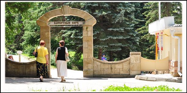 Примечательным местом Кисловодска является Колоннада, символизирующая вход в курортный парк, визитная карточка Кисловодска. Полукруглое сооружение запоминается своим нарядным видом и положением вблизи Нарзанной галереи. Главное в нём — колонны, расположенные в двух ярусах. Коринфские колонны нижнего яруса поддерживают плоскую крышу, в центре которой короткий верхний ярус с башнями и арками. Крыша нижнего этажа, огражденная балюстрадой, должна была служить площадкой для летнего ресторана. Возвели колоннаду в 1912 году по проекту архитектора Н. Н. Семенова, к 100-летию победы над Наполеоном. Оригинальность строения подчеркивается и местом расположения — на мосту через речку Ольховку. Всевозможные деревянные постройки, закрытые залы, кухня, подсобные помещения, лестницы скрывали благородный облик колоннады. В 1948 году все лишнее убрали, и колоннада стала главным входом в курортный парк.