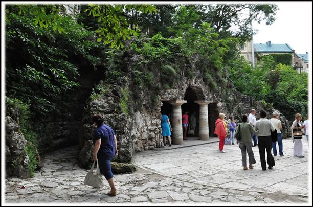 Озеро Провал — естественная пещера в Пятигорске в виде конусобразной воронки, на дне которой находится карстовое озеро минеральной воды чистого голубого цвета. Глубина озера 11 м, ширина 15 м. Температура воды от 26° до 42 °C. Голубой цвет воде придают содержащиеся в ней сера (сероводород) и особые бактерии. Провал впервые исследовал Петер Симон Паллас 1793 году. Ученый, ползком приблизился к краю воронки и наблюдал пещеру сверху и измерил глубину внешней воронки и описал ее вид. В то время на дне были видны два озера - большое и малое, соединенные узким проливом. После пробития в 1858 году тоннеля длиной около 58 м, воду стали принимать в лечебных целях. После торжественного освящения тоннеля и озера в 1885 году в гроте Провала в специальной нише была установлена икона Божией Матери Всех Скорбящих Радости, которая затем была заменена на икону Великомученика и Целителя Пантелеимона.