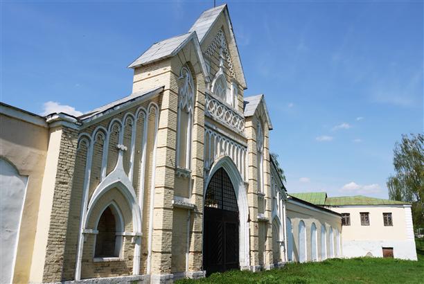 На территории усадьбы есть еще одна архитектурная достопримечательность — ворота каретного двора. И это готика в чистом виде! В былые времена через эти ворота царские фрейлины влетали на конюшню кровушки лошадиной попить.