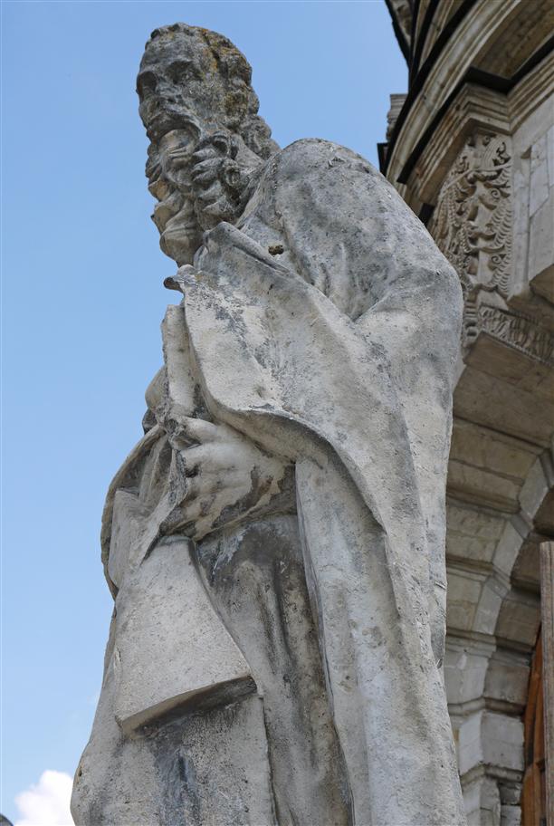 У входа два "каменных стража": Григорий Богослов и Иоанн Златоуст. Время слегка надругалось над ними, но проходя между ними все равно ощущаешь, что над тобой оно надругалось больше...