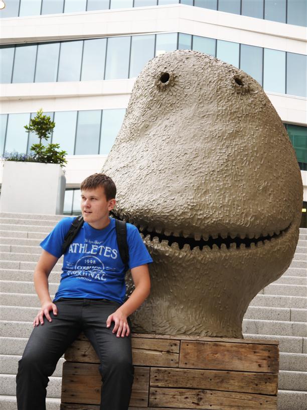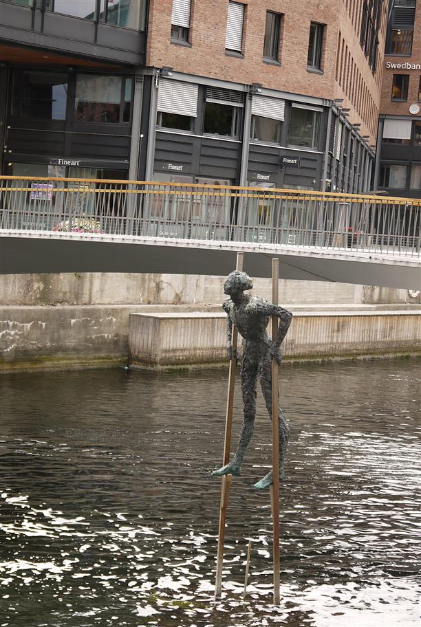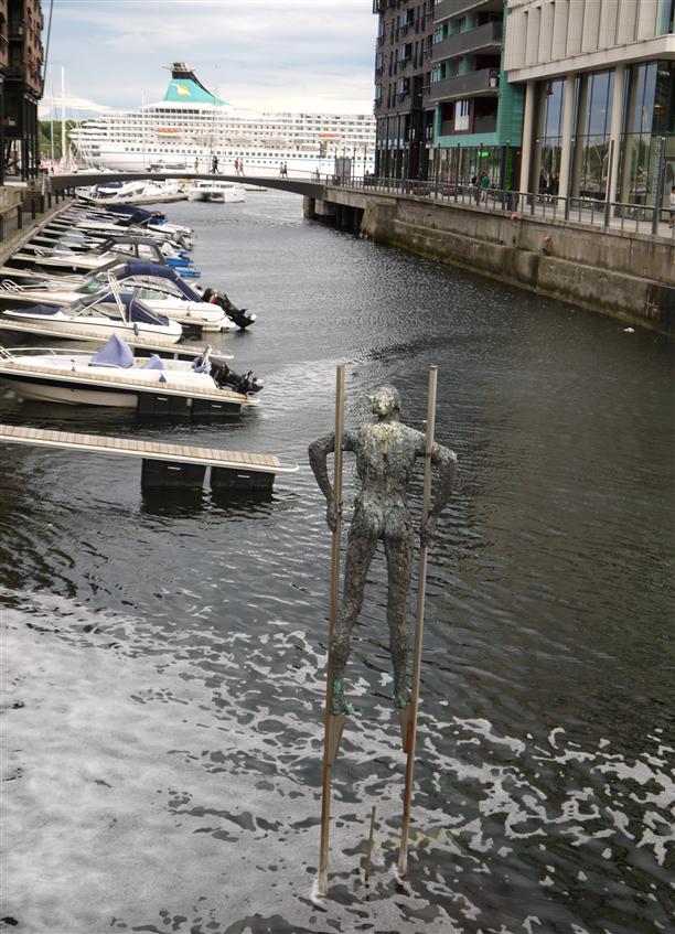 В Осло просто нашествие городских скульптур, вызывающих улыбку. К примеру, человек на ходулях, направляющийся в Осло-фьорд...