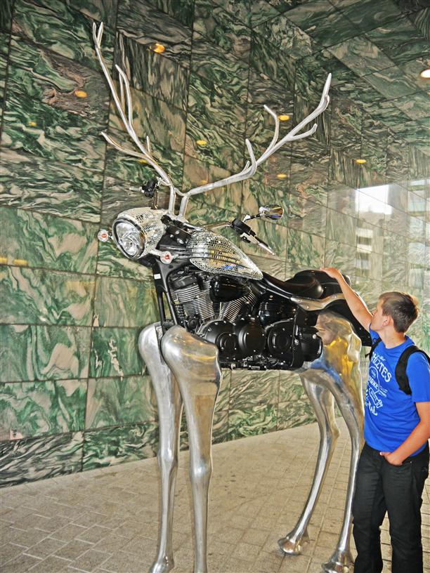 Олень-мотоцикл в одной из подворотен.
