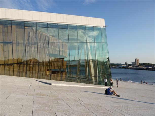 Оперный театр Осло признан лучшим зданием Европы. Он напоминает айсберг, приплывший из северных морей и теперь дрейфующий в водах Осло-фьорда. Не факт, что у меня тот самый ракурс, из которого видно, но так оно и есть...