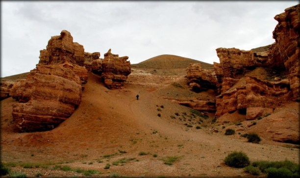 Было пасмурно, и я немного расстроился, что не удастся сделать яркие кадры. Но я и так был счастлив и доволен, что все-таки доехал до этого места. Водитель, которого звали Серик, был здесь два года назад, привозил одного японца. Тогда он лег в машине спать, прождав туриста более шести часов. В этот раз я уговорил его спуститься в каньон вместе со мной. Благодаря мне он увидел его изнутри впервые.