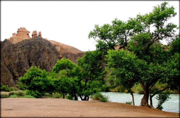 Наш спуск привел нас прямо к уникальной роще расположенной возле русла реки Чарын. Ее уникальность в том, что таких рощ всего две в мире. Одна в Северной Америка, другая здесь в Казахстане. В каньоне Чарын сохранился реликтовый вид ясеня согдийского, который пережил эпоху оледенения.