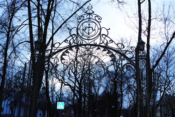 А еще интересно, что герб Бреста - лук с натянутой тетивой и стрела - вырисовывается в самых разных местах. Например, в этих кованных воротах :)