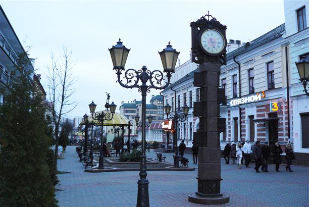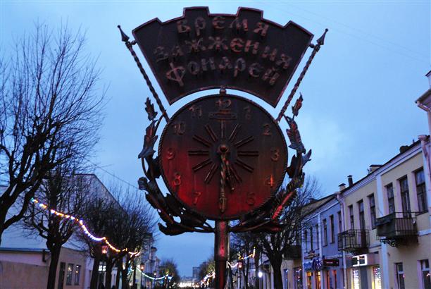 А еще с улицей Советской связана очень красивая традиция. С одной стороны улицы - скульптура с кошками на крышах, а с другой ее стороны установлены необычные часы с надписью "Время зажжения фонарей". В наш день стрелки показывали половину шестого... :)