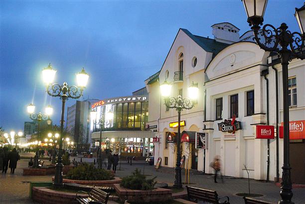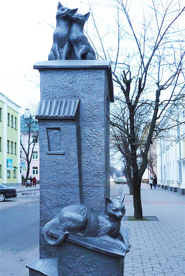 Кстати, о Савецкой (она же улица Советская) - однозначно самая интересная улица Бреста. Ее пешеходная часть начинается от памятника "Старый город", который представляет собой несколько домиков, тесно прижавшихся друг к другу, с котами и кошками на уютных крышах. Когда-то памятник носил другое название - "Месяц март" :) Что в общем-то было логичнее.