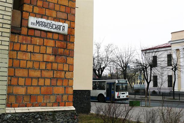 Кстати, все названия улиц - на белорусском. Фефочка очень надеялась случайным образом выйти на улицу Койкага, но не случилось. Зато вот вышла на Маякойскага :)