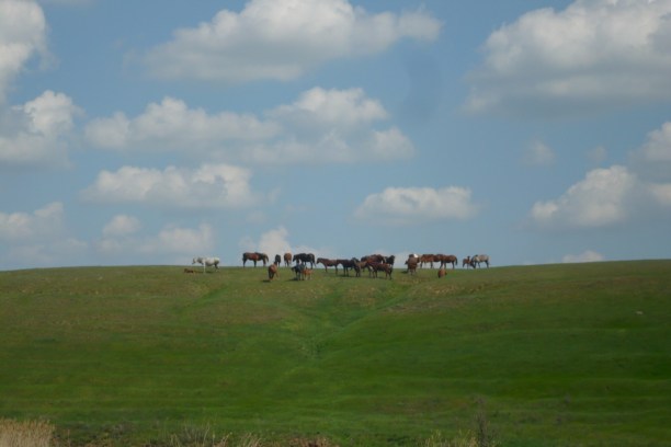 Вот уж чего мы не ожидали, так это увидеть такой знакомый, зелёный ландшафт. Ну что ж, едем дальше, наслаждаясь пейзажами и собирая последние силы в кулак, так как уже 1000 км за плечами. А вот и местные лошадки...