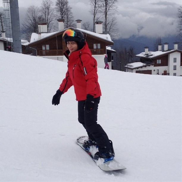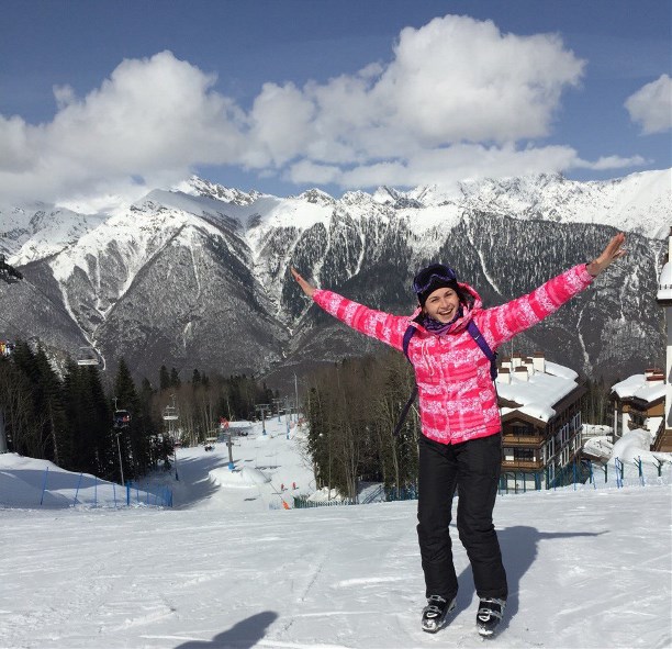 — Я давно мечтала встать на сноуборд. И вот на Розе Хутор осуществила свою мечту. Вместе с внучкой 3-летней Дашей мы теперь сноубордисты! Тут замечательные инструкторы, а оборудование в аренде новое, современное. Поначалу было страшно — сноуборд управляется сложнее, чем лыжи. Много падений, больно бывает. Но когда поймаешь движение — ощущаешь себя «бегущей по волнам», нет — плывущей! Тут очень красивая природа, горы. Нам немного не повезло с погодой — я люблю солнце в горах, а были снежные дни, но все равно очень здорово!