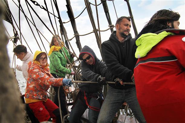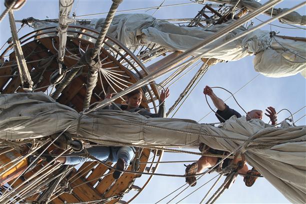- А в 2000 году корабль отправился в свое первое плавание. С тех пор ежегодно «Штандарт» собирает у себя на борту команду, желающую отправиться в увлекательное плавание, научиться премудростям управления фрегатом и на время стать моряком.