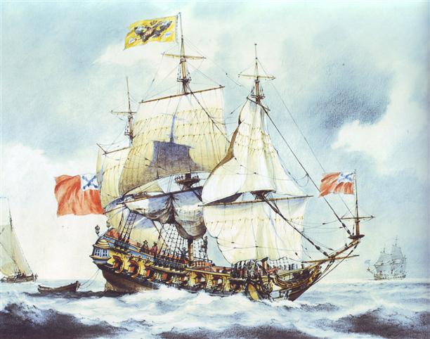 - В 1702 году Пётр Первый приказал построить новые корабли для защиты Петербурга. Всего за пять месяцев, начиная работу буквально «в чистом поле», на Олонецкой верфи были построены первые 10 судов. Самым большим был 28-пушечный фрегат «Штандарт», который и стал флагманом нового Балтийского флота. За две недели фрегат был оснащен мачтами и парусами. В Петербург он вышел 8 сентября 1703 года. Его капитаном был Петр Михайлов. Первое боевое крещение «Штандарт» получил в 1705 году, отражая попытки шведского флота прорваться мимо Кроншлота к Санкт-Петербургу.