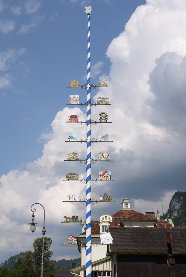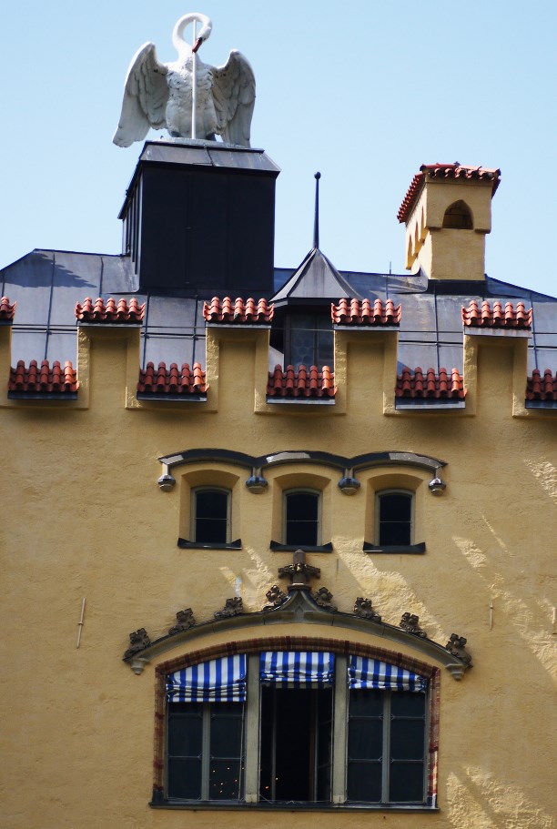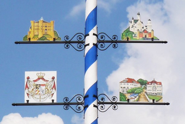 В Хоэншвангау самую верхнюю строчку в "списке", конечно же, занимают замки, а столб венчает белоснежный лебедь, точно слетевший с родового герба семейства Швангау, владеющего всей этой роскошью.