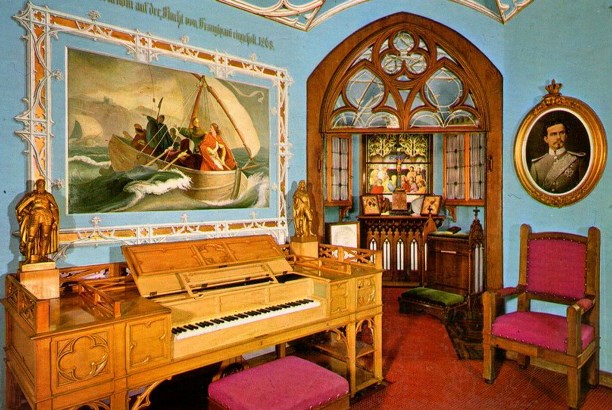 В одном из залов замка до сих пор стоит пианино, на котором Вагнер играл для короля Баварии.