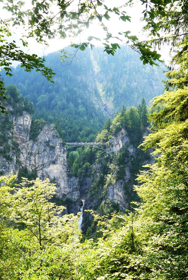 Мимо стен замка, если держаться правее, в лес уходит так называемая Королевская тропа. Она идёт к Мариенбрюке (Marienbrucke) - романтичному мостику, повисшему на высоте 92 метра над 45 метровым водопадом, а потом поднимается всё выше и выше - на вершину горы Тегельберг.