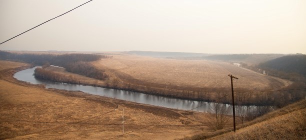 Прямо перед деревней Шилово с большого холма открывается фантастический вид на изгиб Красивой Мечи.