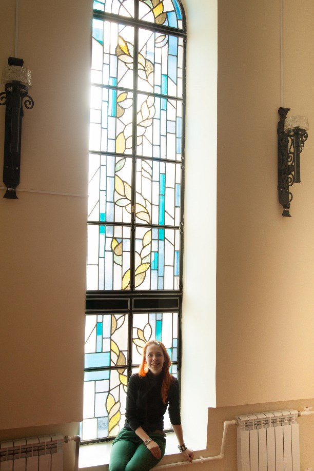 Музей расположен в старинном здании с высоченными окнами, узким входом, витражами и коваными лестницами.