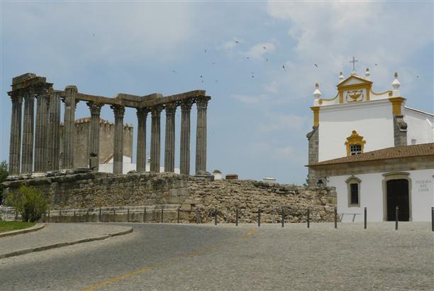 Еще мы решили непременно побывать в Эворе (автобус — от вокзала Сете Риос в Лиссабоне). Белоснежный городок с желтым орнаментом, апельсиновыми садами, храмом Дианы II века до н. э. и… знаменитой Капеллой костей.