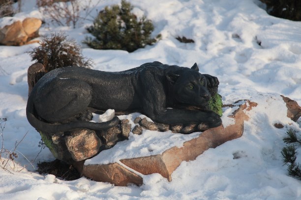 В сквере перед зданием вокзала расположились леший, чёрная пантера и сказочный колодец.