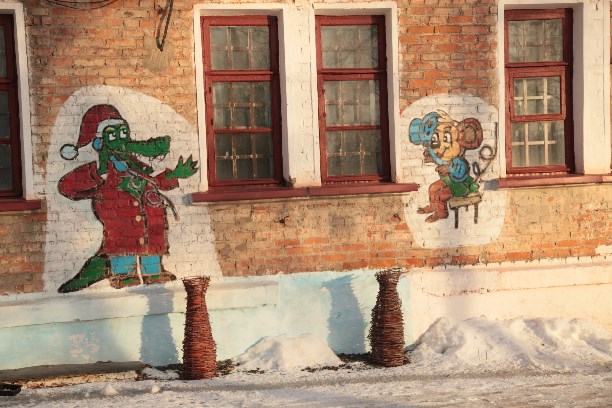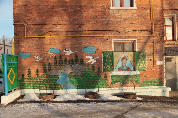 Вот такое окно в сказку нарисовали местные умельцы во дворе дома № 25 по ул. Коммунаров.