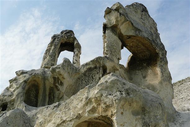 На защиту пещерных храмов встали местные жители. Это был отчаянный поступок! Принеся в жертву собственные судьбы, они сохранили и храм Сицилийской Божией Матери, и храм в честь Рождества Иоанна Предтечи, расположенный в Малых Дивах... К нему мы и двинули по меловым тропинкам :) Шли интуитивно. Не наблюдая никаких указателей, лишь встречая редких прохожих, которые были очень скупы на полезные советы. Но мы его нашли! Храм Иоанна Предтечи находится в толще горы над Свято-Успенским монастырем, в трех километрах от Больших Див.