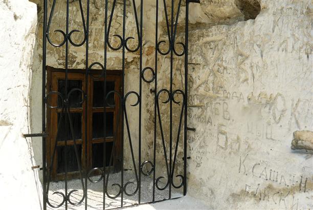 Когда идешь по меловому ходу в полной темноте, освещая дорогу мобильником, приятно попасть в комнату с окном :) Единственным церковным окном! Со стороны улицы окно выглядит прозаично. присмотревшись к надписям, понимаем, что в 1910 году уже жили "здесь был Петя" и "здесь был Вася".
