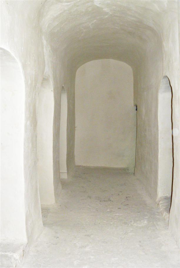 Внутри - прохладно (всего восемь градусов). ощущение пещеры есть, а ощущения церкви нет. Казалось, что мы внутри огромного куска мела, в котором пятнадцать трудолюбивых монахов выдолбили залы, ходы, кельи и лестницы... Впечатлил кольцевой "крестный ход" протяженностью 150 метров и небольшая трапезная на втором этаже (да! там есть второй этаж).