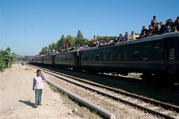 Поезд-экспресс. Кому не хватает денег на проезд, перебираются на крышу.