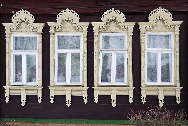Закрывая тему егорьевского деревянного зодчества, скажу, что деревянных домов в городе очень много, все они интересные - с кружевными наличниками, резными мезонинами и в большинстве своём почему-то  красно-коричневого оттенка. Гулять интересно.