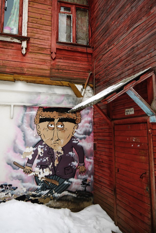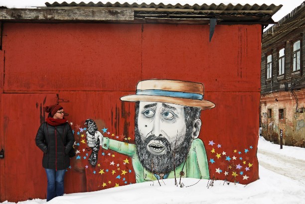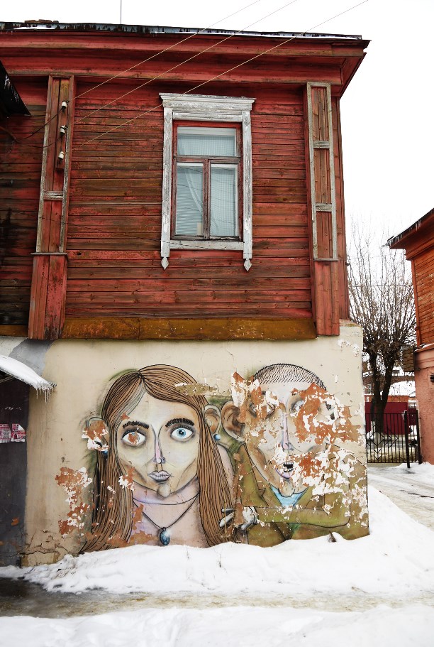 В маленьком провинциальном Егорьевске нашлась и классная уличная живопись. К примеру, во дворе дома 48 на ул. Советской живёт продавец волшебных голубей :) Национальность угадывается.