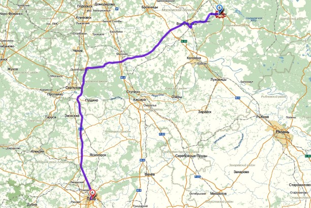 - Три часа по хорошей дороге (мы не стритрейсеры, карта кликабельна), и вот он город мечты Егорьевск 1778 года рождения. На 70 тысяч жителей здесь приходится около десятка заводов, а продавщица в придорожном магазине на вопрос «Что у вас есть интересного в городе кроме егорьевских колбас?», не задумываясь, отвечает: «Заводы!» :)