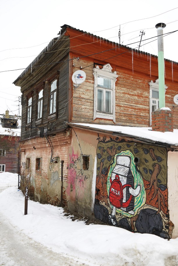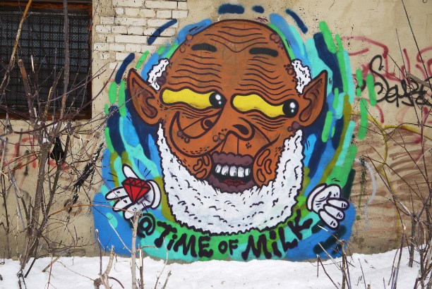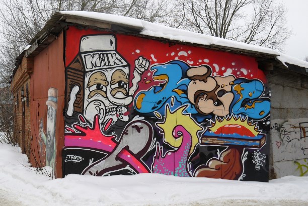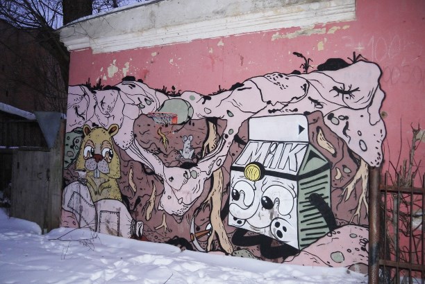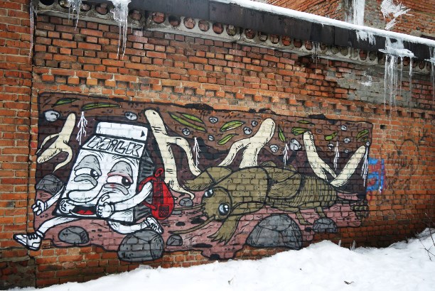 Но большая часть граффити в Егорьевске представляет собой картинки о приключениях пакета молока и носит автограф Milk. Сначала это радует, а потом понимаешь, что уехать-то ты уедешь, но уже никогда не будешь прежним пакет уже пролез в твоё подсознание :)))