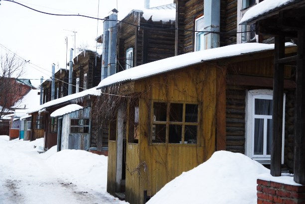 Второй шедевр - многоподъездный деревянный дом постройки 1917 года на ул. Тельмана, 3. Просто фантастическая конструкция!