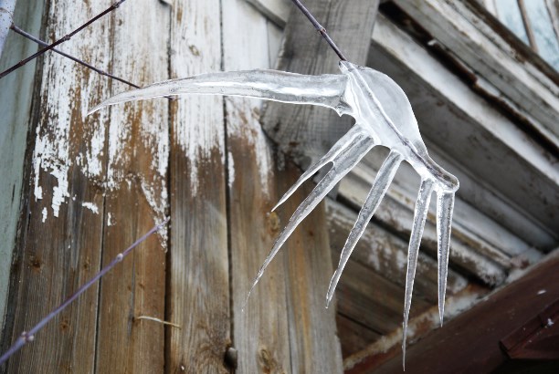 Полностью его сфотографировать не удалось, ибо он напоминает разноцветную гусеницу, забившуюся в проём между сараями.