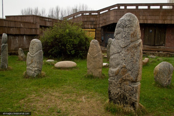 Рядом с музеем разместили балбалы - каменные изваяния, которые ставили на погребальные курганы древними.