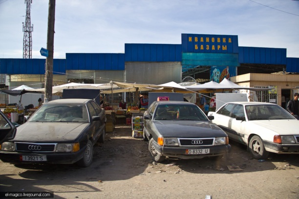 Воистину самая популярная машина в Киргизии - Ауди 100 "селёдка". Они выпускались с 1982 по 1991 годы, возраст посчитайте сами :)