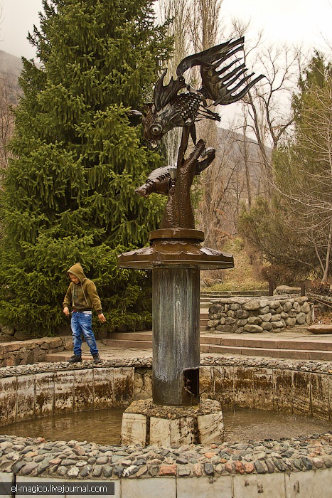 Иссык-Ата переводится как Горячий Отец, потому что в этом ущелье из земли бьют горячие источники. Вода пахнет сероводородом, но это не остановило меня чтобы выпить литр этой воды про запас. Сразу стал моложе, здоровее и более жизнерадостным.