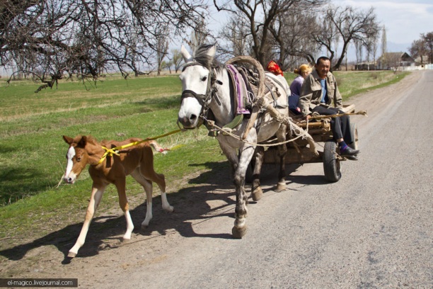 Помимо Ауди 100 очень популярным средством передвижения является лошадь. Такого количества бытовых наездников как в Киргизии я больше нигде не встречал.